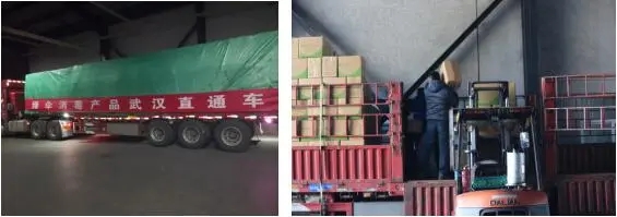 1月23日,向湖北省红十字会第一批捐赠消毒产品和口罩。