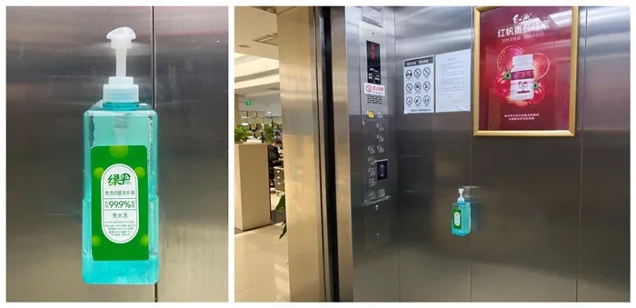 严格执行公共区域消毒,公共区域实行一天3次消毒。电梯内按键使用消毒液擦洗,电梯间配备免洗洗手液保证员工安全。