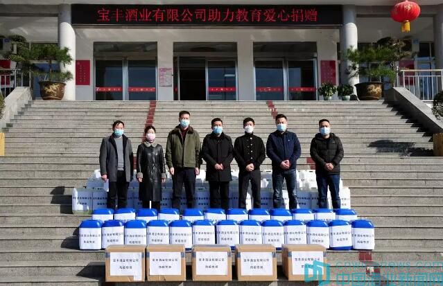 宝丰酒业多年来始终积极参与光彩助学行动,倾情支持教育事业。新冠疫情发生以来,宝丰酒业已累计为社会捐赠了价值300多万元的医疗救治设备和防控物资。在各学校开学之即,宝丰酒业又多方联系加紧采购了1万个医用口罩、1吨84消毒液和500公斤医用酒精等防疫物资,全部捐赠给县教体局。