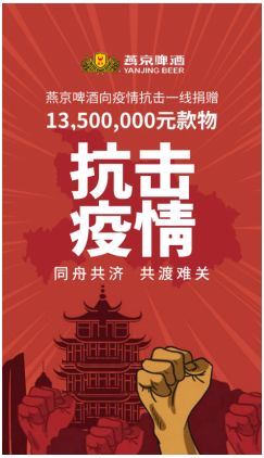 众志成城,其利断金。燕京啤酒在疫情面前不退缩,不慌张,积极贯彻落实各项防疫工作的同时,积极履行品牌社会责任,时刻心系一线人员与人民群众,积极有效的为防疫工作贡献了企业力量。