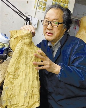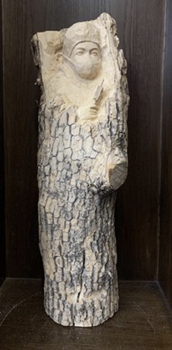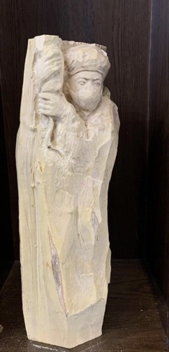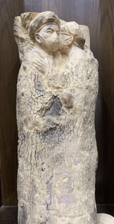 《夫妻出征》在奔赴抗疫一线中,同为医护人员的夫妻怀着对人民生命安全的高度责任感,毅然选择共同奔向武汉,表情的刻画突出了他们必胜的信念!作品以自然美的材质结构与主题融为一体,巧妙利用黄杨木肌理刻画出夫妻间动人的形态,让人意识到每一个人肩上的义务和责任!