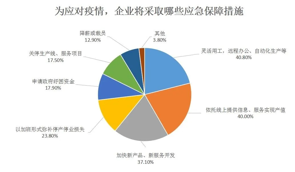 问卷显示,51.10%的企业表示受原材料及产品运输困难影响、延迟复工造成的生产进度拖延,加之原料成本、人工成本、物流成本、防控成本、停产或半生产期间的损失与资金压力等都将增加企业生产运营成本,这些也是企业复工期间和今后一段时间都将面临的困难。尽管复工后会有所缓解,但损失可能会需要相当长的一段时间消化。与此同时,受市场销售影响,资金回流困难。部分企业已出现资金链缺口的现象,如果没有较好的解决方案,可能会严重影响企业的运营。