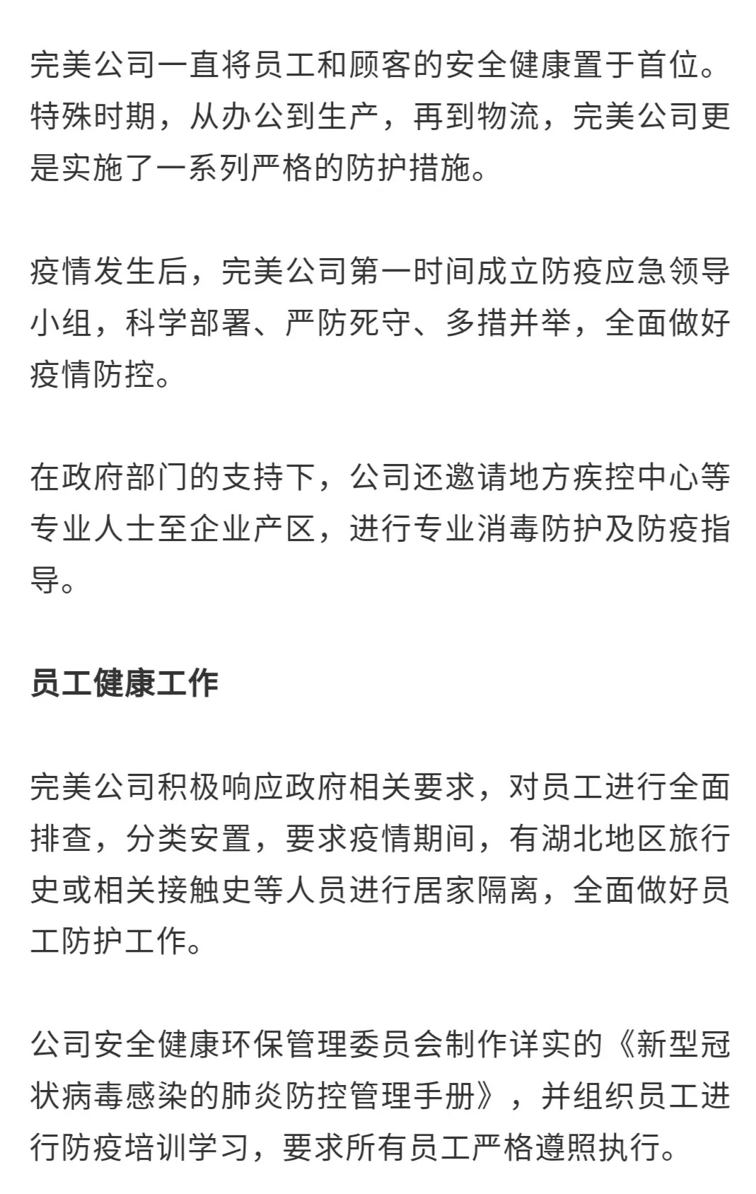 疫情期间,完美公司鼓励顾客线上下单,产品由京东快递直接配送到家,更安全、更快捷!