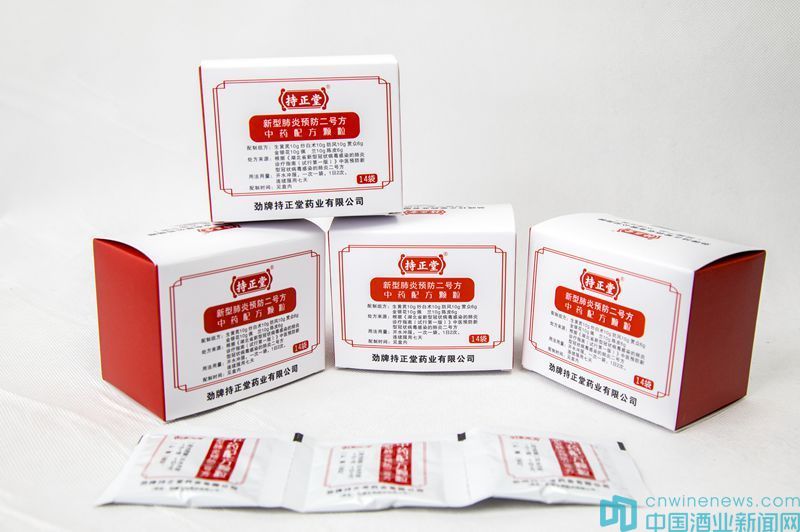 劲牌持正堂药业公司是劲牌公司旗下全资子公司,该公司2017年11月获批成为湖北省首家中药配方颗粒,2018年被评为湖北省唯一一家省级中药配方颗粒工程技术研究中心。为有效抗击疫情,劲牌持正堂药业从1月26日即满负荷生产捐赠“预防二号方”。截至3月10日,劲牌已捐赠预防、治疗及康复用中药配方颗粒463万副(价值超过9194万元),全力支援抗疫一线人员和患者,惠及人数超过70万。
