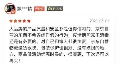 “家里常备才安心”“准备开业了,要用消毒产品。很棒啊,价格很惠民,分量也很足”“非常时期的护卫工具,必不可少”“大牌品质有保证”……许多线上购物达人在收到纳爱斯紧急供应的消毒产品后,纷纷在平台上给予好评。