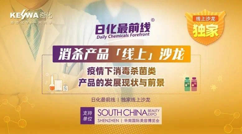 2月29日,日化最前线还举办了“消杀产品线上沙龙”,邀请巴斯夫、广东迪美生物科技、广东省抗微生物材料与抗菌检测工程技术研究中心等专家与分析师,积极探讨疫情下消毒杀菌类产品的发展现状与前景。