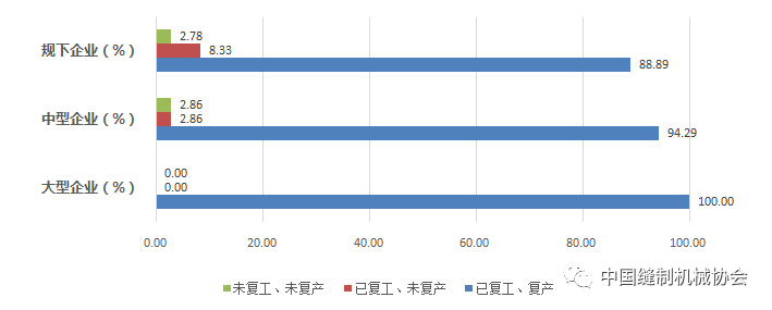 从本次行业复工复产调查数据来看,行业整、零生产体系基本实现全面复工复产,商贸体系复工比例不断提升,行业产业链整体运行情况持续好转。但是受下游需求低迷、生产订单不足等影响,企业当前生产任务大都为年前已确定订单和国外部分新增业务订单,部分主要依靠内需市场的生产企业由于订单任务不足,产能恢复尚处于较低水平,因此行业的产能恢复比例要远小于已复工企业比例,显示当前行业在一定程度上依然面临市场下行压力。行业企业在复工复产过程中,积极破解克服缺工、物流不畅、供应链滞后等一系列难题后,目前发展的焦点已经从如何复产转移到如何复销上来。随着近期新冠疫情在全球大面积爆发,欧美等发达国家金融动荡,已纷纷采取封城、封国等举措限制人员流动和控制疫情扩散,预计将进一步加剧国际经济和消费低迷,对我国缝制机械行业的外需市场将带来较大的不确定性,行业企业可能将面临阶段性内外市场双向放缓的严峻挑战。建议企业及时关注和研判市场形势与变化,随时保持与国内外客户的沟通联络,积极稳定国内市场,有效拓展国外市场,提升风险意识,加强现金流管理和经营计划调整,以坚定的信心、稳健的思路、最坏的打算来积极应对本次疫情危机,实现企业平稳健康发展。