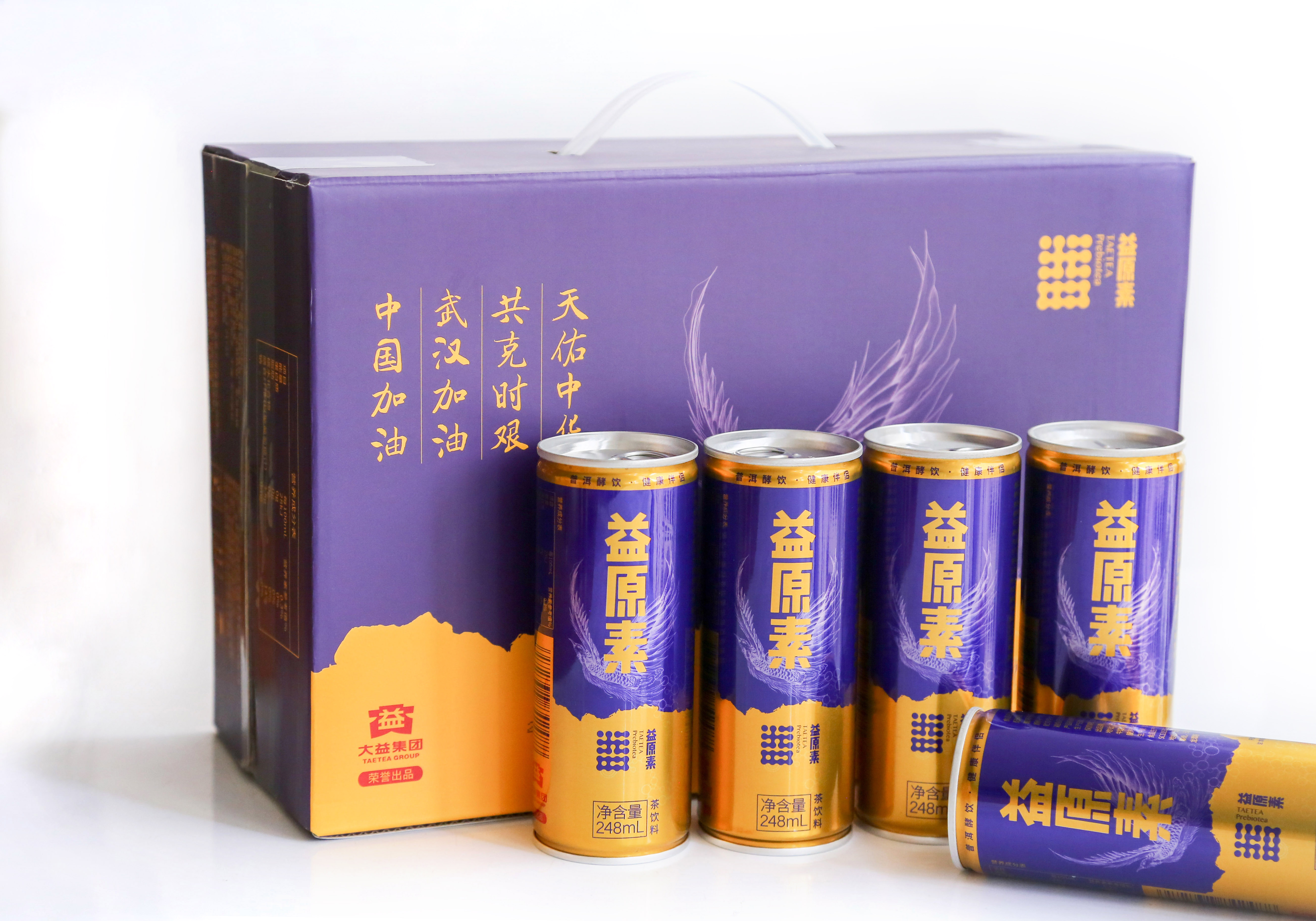 此次捐赠的益原素普洱酵饮是大益集团出品的首款普洱茶酵饮,源自划时代、高科技茶品益原素,经大益微生物技术有限公司十年技术研究、两年工艺探索研发而成。