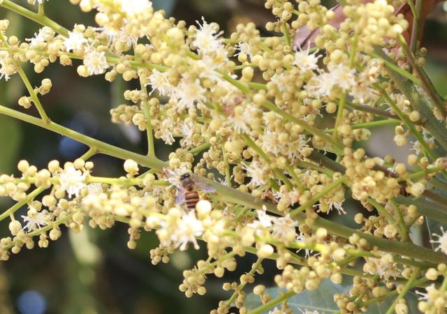 【春色满园关不住,一枝红杏出墙来。三月的浦康花生油有限公司厂区迎来了春暖花开!你看!芒果树都开始结果了,黄皮果树也开花了,小蜜蜂在龙眼树花朵上愉快的采蜜呢!】