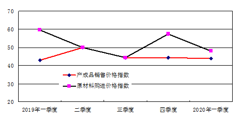 2020年一季度,有调查企业反映原材料采购中塑料、铜、铝、PE、精密管、塑木板、电子元器件、地毯、纸制品等部分材料价格有所上涨,塑料米、纸板、海绵、钢管、铁板、拔光料、塑粉、线路板、钢材等部分材料价格有所下降。