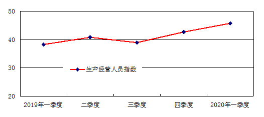 2020年一季度,生产经营人员指数为45.8,略低于临界点4.2个百分点,环比去年四季度指数上升3.2个百分点,同比去年一季度上升7.7个百分点。另外,根据调查显示,一半的企业表示下一季度将增员,一半的企业表示下一季度将减员。综上表明,我国体育健身器材行业生产经营人员数量处于小幅减少状态,而人员下降幅度也在呈缩小趋势。调查的样本企业中37.5%的企业反映招工困难、人员减少。