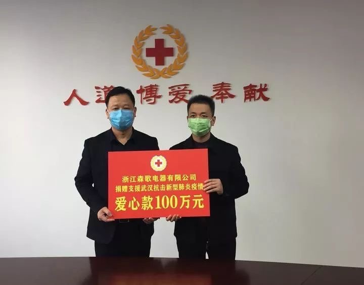 1月29日,浙江森歌电器有限公司通过嵊州市红十字会捐赠支援武汉抗击新型肺炎疫情爱心款100万元。