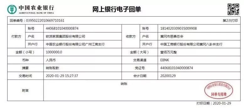 1月29日,欧派家居集团驰援疫情较为严重的黄冈,向黄冈市慈善总会捐助200万元人民币,款项将作为疫情防控专款使用。
