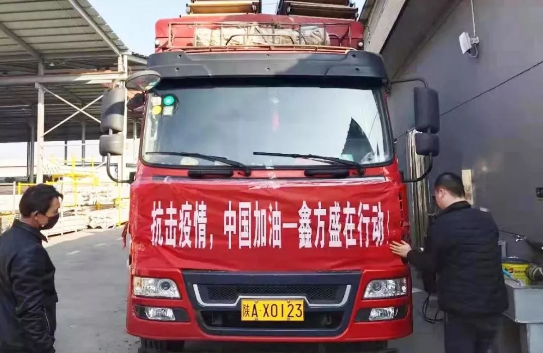 2月2日,鑫方盛满载有PVC管件、切割片、橡塑胶水、暖通辅材等施工材料的货车从山东区域公司出发前往武汉,确保所需物资如期到达,为武汉雷神山项目建设保驾护航。