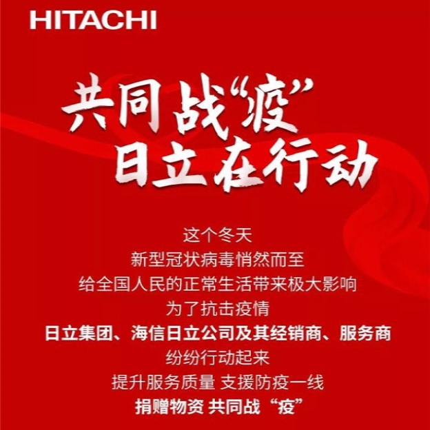 这个冬天,新型冠状病毒悄然而至,给全国人民的正常生活带来极大影响。为了抗击疫情,日立集团、海信日立公司及其经销商、服务商纷纷行动起来,提升服务质量,支援防疫一线,捐赠物资、共同战“疫”! 详细