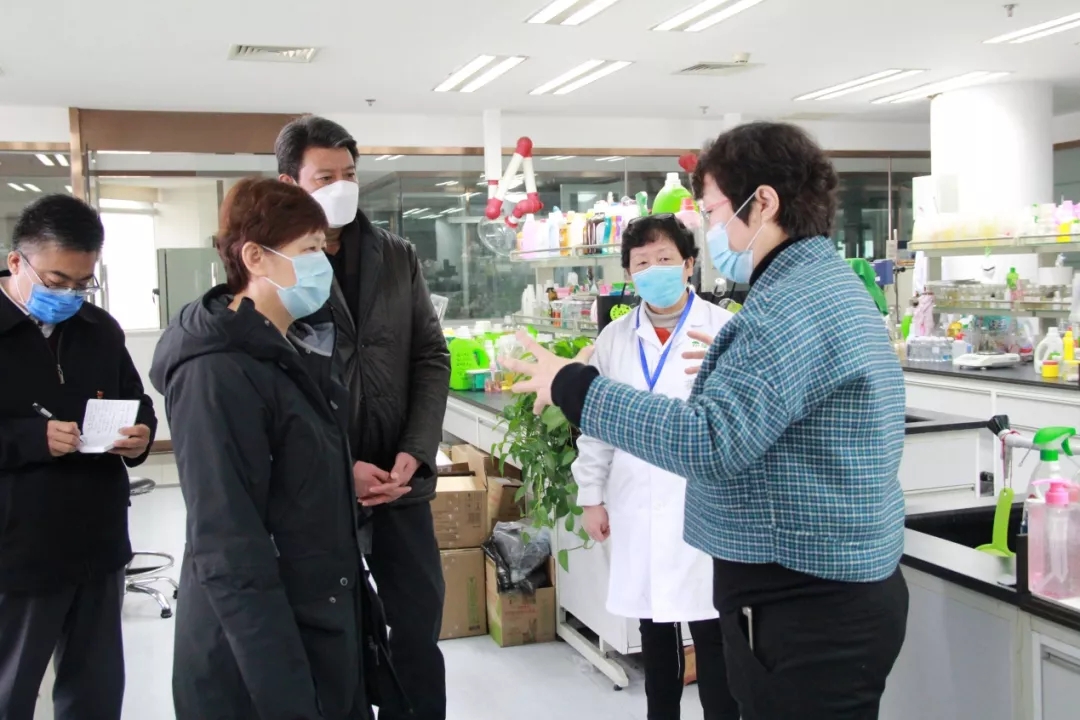 首先,北京市市委常委、统战部长齐静、北京市市委统战部副部长、市工商联党组书记赵玉金,北京市工商联副主席郑勇男,北京市工商联经济处处长朱强一行来到绿伞公司视察指导新冠肺炎疫情防控工作。绿伞化学董事长兼总经理魏建华向齐部长一行介绍了绿伞对疫情防控所做的工作、防控物资供给情况、原材料供应情况以及企业复工进度等。视察中,齐静部长对绿伞疫情防控工作给予了充分肯定。