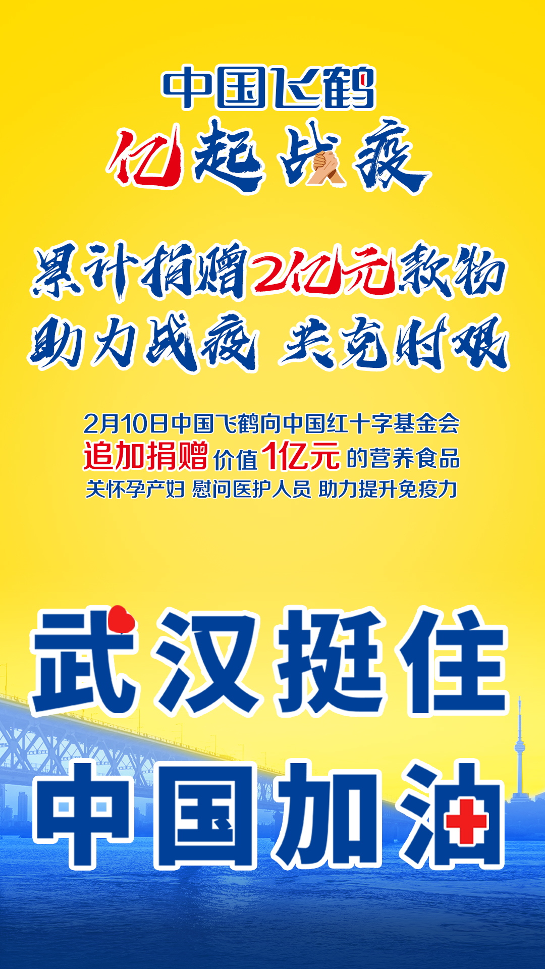 中国飞鹤在设立1亿元战疫专项资金后,再次追加1亿元营养食品,累计已捐赠2亿元款物保障战疫期物资及营养需求,全力守护一线医务工作者和孕产妈妈们的安全与健康。春节后累计发货8300吨,数千名终端服务人员送货上门,客服接入电话超250000通,13天在线直播活动超27000场……
