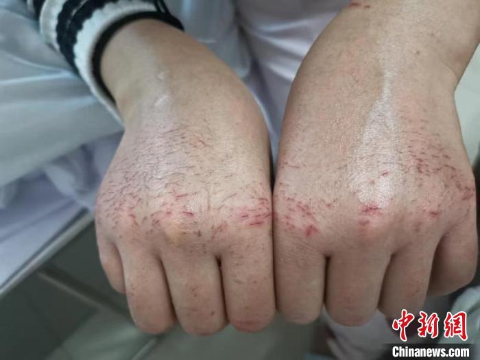 胡佩满是血痕的双手 甘路民 摄