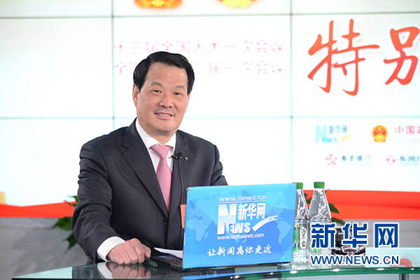 全国人大代表,中建材蚌埠玻璃工业设计研究院院长彭寿做客新华网2018全国两会特别访谈 新华网杨濛 摄