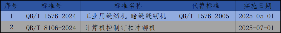 缝制机械2项行业标准批准发布